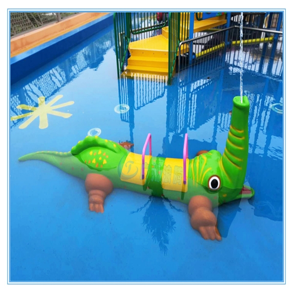 噴水鱷魚LT-EY17101,造型為一條全身碧綠的鱷魚趴在水池里,張開巨大的嘴巴噴著水,些許恐怖,些許可愛。令人覺得眼前一亮!