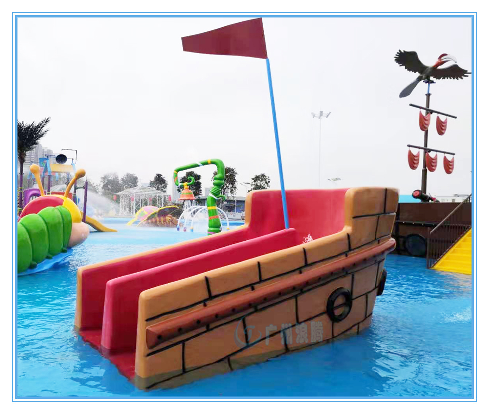 兒童滑梯-海盜船滑梯LT-HT203是廣州浪騰水上樂園設備有限公司設計的一款兒童滑梯。根據海盜船原型簡單處理,設計新穎、造型獨特、制作精良。這樣的一款兒童滑梯設備無論是室內還是在戶外都適用,既可以作為水上樂園戲水池的戲水設備也可以在兒童游樂場作為大型兒童游樂設備、或者是大型兒童玩具.