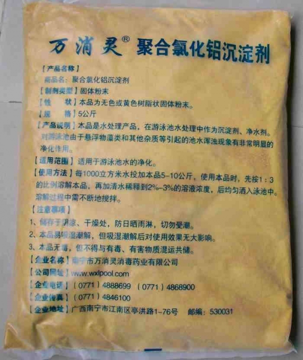 本品是水處理產品,在泳池水處理中作為沉淀劑、凈水劑。對泳池由于懸浮物、藻類及其它雜質等引起的池水渾濁現象有非常明顯的凈化作用。聚合氯化鋁含量大于29%。常規沉淀劑,投入6-8小時后用吸污機吸污。5KG/包*4包/箱。用量每1000方水投5-10KG,使用本品時先按1:3比例溶解,再加清水稀釋到2%-3%的溶液濃度,均勻灑入池中。